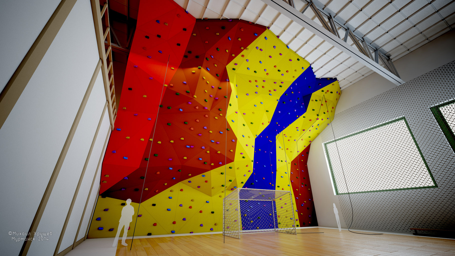 И в догонку, вот концепт скалодрома вписанный в помещение. Моделирование, дизайн, визуализация делалась в течении одного дня (12 часов с перебором разных вариантов).
