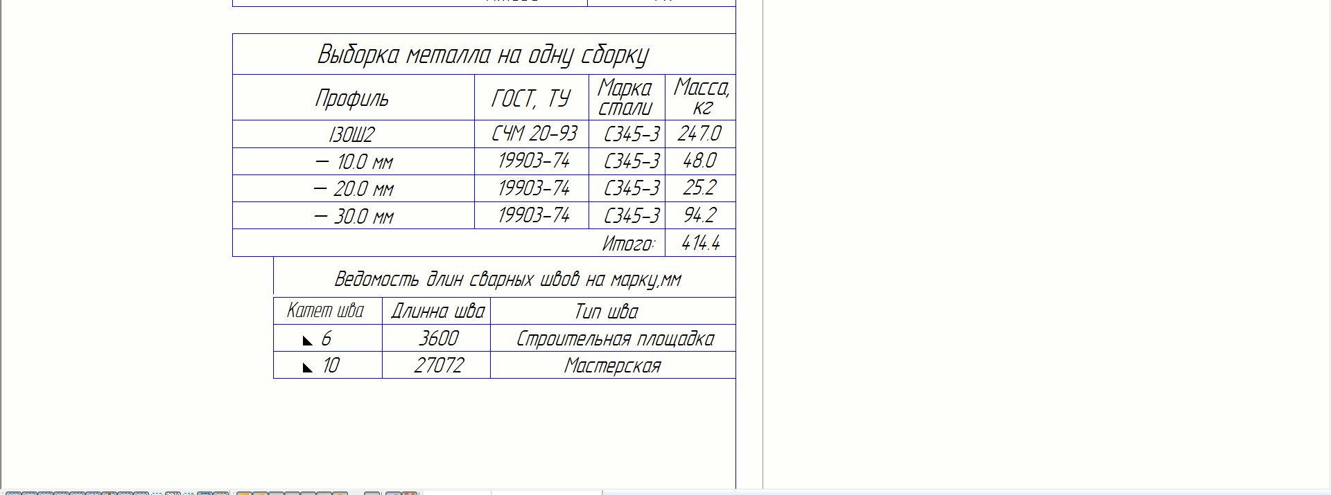 дело в том что если деталь сварена и монтажным швом и заводским то швы суммируютсяmeart писал(а):если в модели указаны какие монтажные, какие заводские, можно отфильтровать по "WELD_ASSEMBLYTYPE"vladimir_a писал(а):Имеется сборка. Присутствуют монтажные и заводские швы. Подскажите пожалуйста как отфильтровать в шаблоне что бы были только заводские швы?