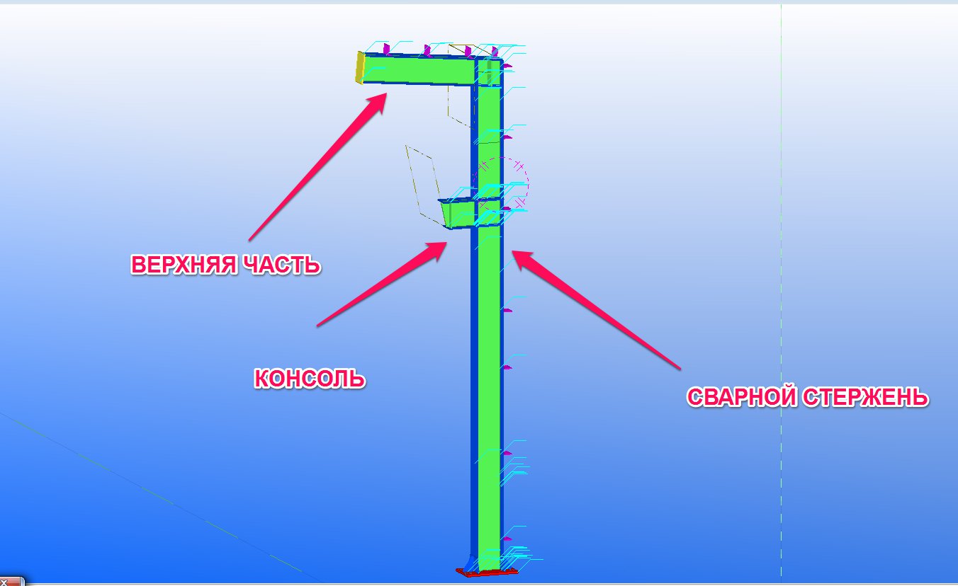 Пример того как собирается колонна в многоуровневую сборку (сварная база, сварной огловок, 2 профиля, и соединительные планки).