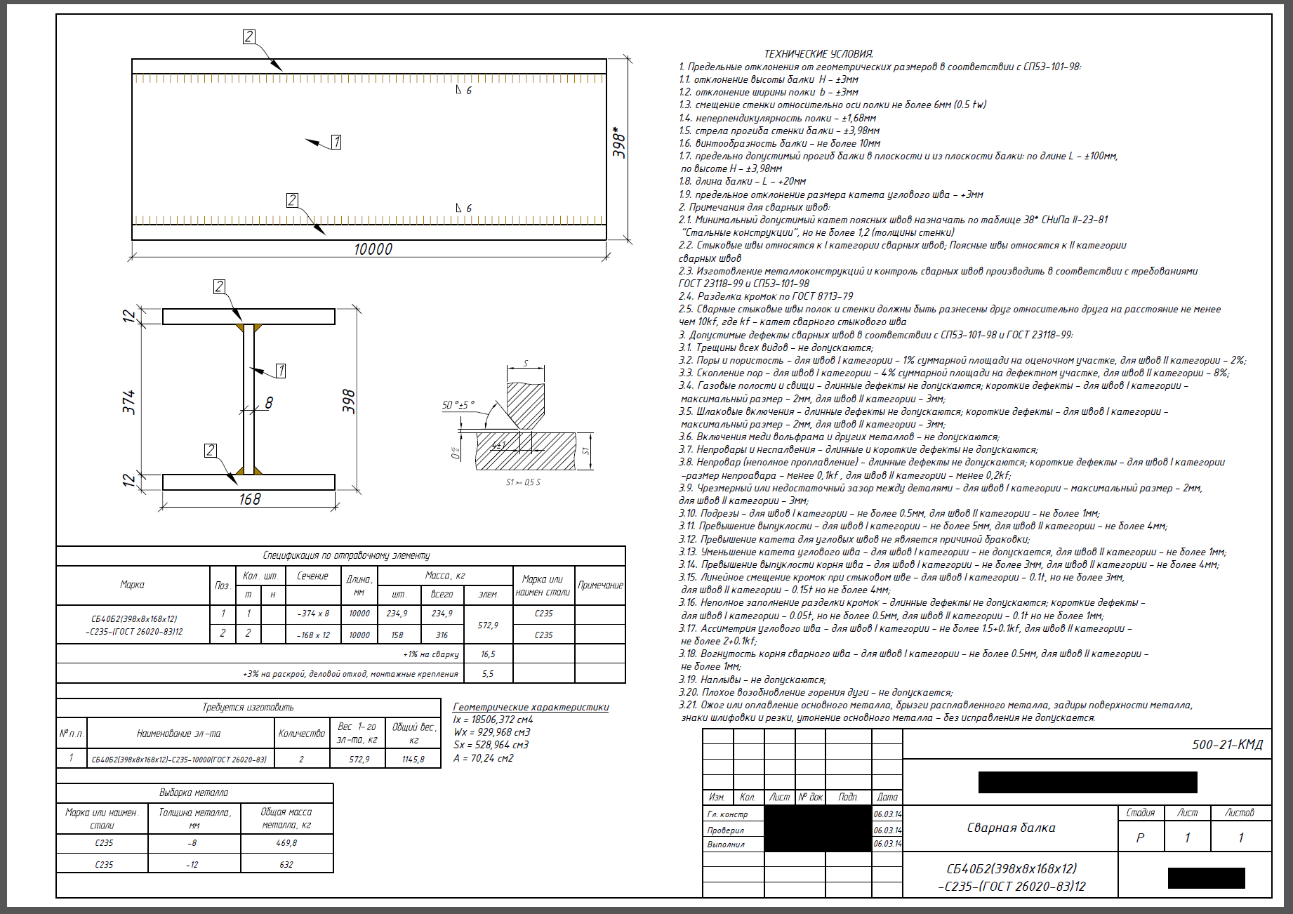 Для производства балки используются 12 м листы если стыки не разрешены (все обсуждается с заказчиком).