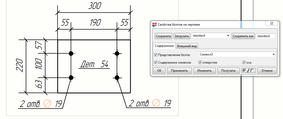 Re: отображение символа ответстия в чертежах