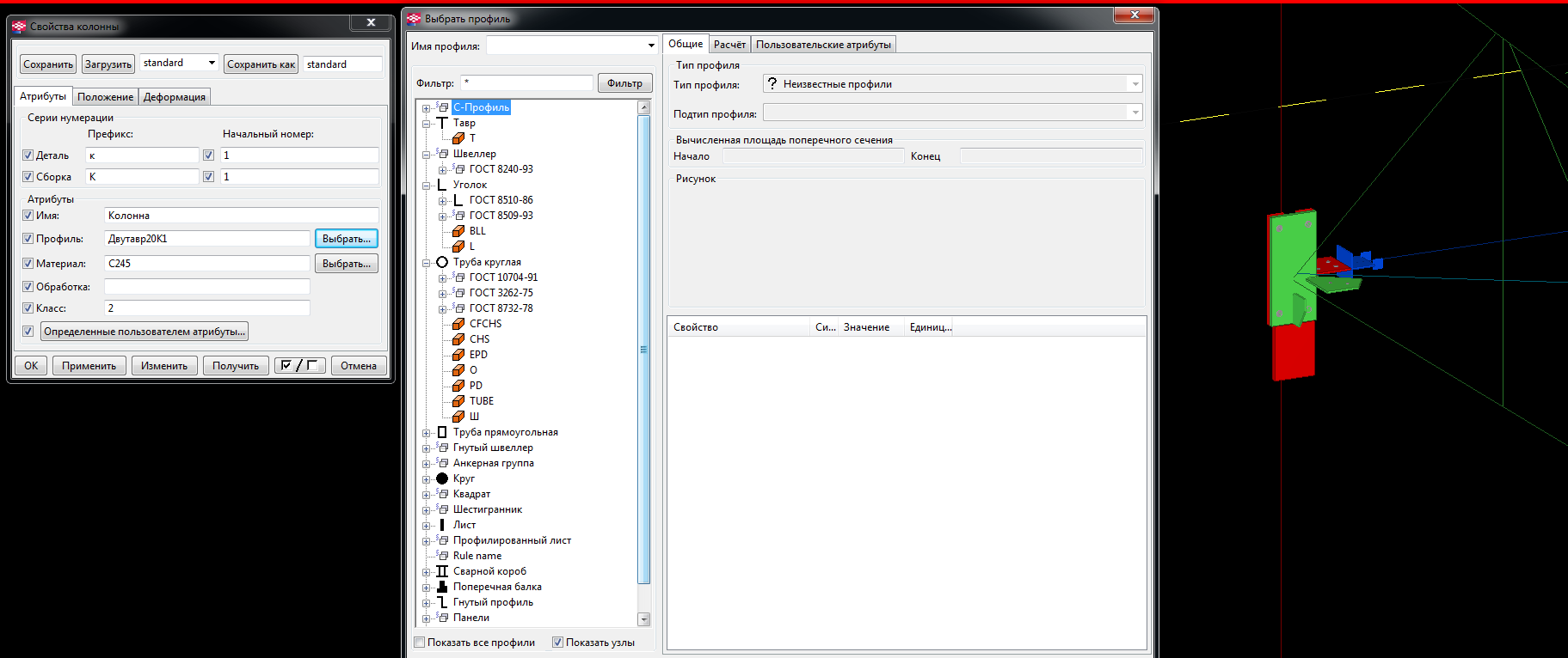 2. а Двутавров не было вообще никаких, как и других профилей (кроме листовых), возможно потому что у меня текла установлена не в папку program files, а сразу на диск С и из за этого установщик не установил базы с профилями.