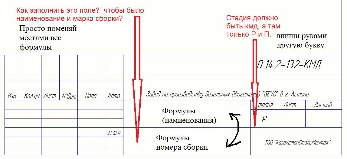 Как заполнить штампик. Это поле особенно нигде не редактируется, кроме как в редакторе шаблона, понимаю что нужно зайти в редактор написать формулу и сохранить свой шаблон, но какую формулу написать, подскажите кому не трудно. Пожалуйста.