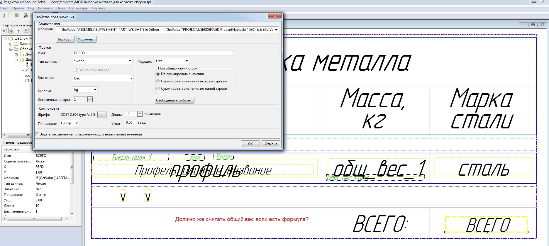 if (GetValue("PROJECT.USERDEFINED.ProcentRaskroia")==0) then Total("общ_вес_1") else