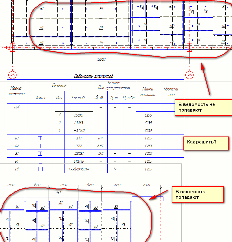 Вопрос в чем- как я уже смог разобраться- в ведомость подтягиваются элементы сборок по префиксу главной детали (колонны или балки). А если, например, нужно чтобы замаркированный на схеме элемент попал в ведомость, но одной строкой, без символа профиля, чтоб в примечаниях написать "сечение сложное, см. такой-то разрез"?Таран Д. А. писал(а):Тогда тебе сюда viewtopic.php?f=6&t=161