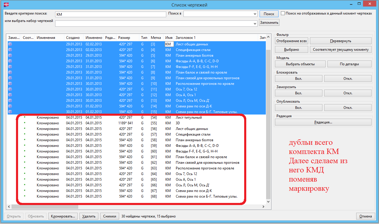 Монтажники КМ можносразу 1 кликом клонировать в КМД, только маркировку поменять.