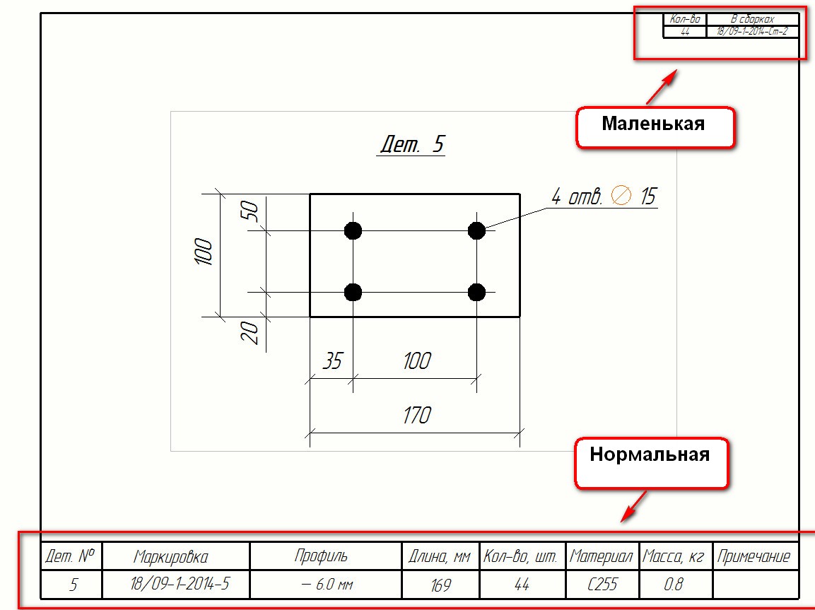 Стал пользоваться чертежами отдельных деталей на отдельных листах. Очень удобно, меньше проблем. Но очень маленькие таблица количества деталей и текст в ней, при распечатке не всем видно. А тем более в условиях цеха. Просьба увеличить табличку до размеров нижней.