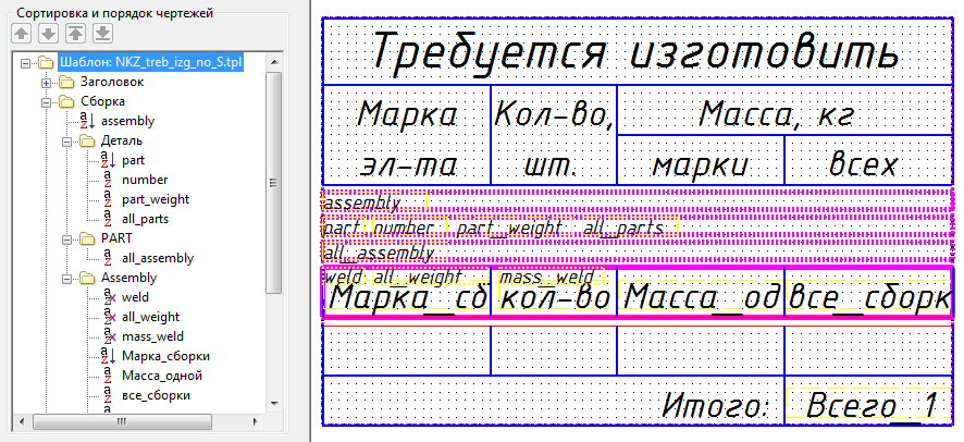 Интересует следующее - есть цель получить ведомость отправочных марок с учетом сварных швов. Т.е. есть шаблон таблицы "требуется изготовить", который откатан тысячами чертежей, и вот хочу сделать отчет в эксель, чтобы масса марок считалась аналогичным алгоритмом, чтобы можно снимать отчет и получать 100% такой же результат как в сборочных чертежах.