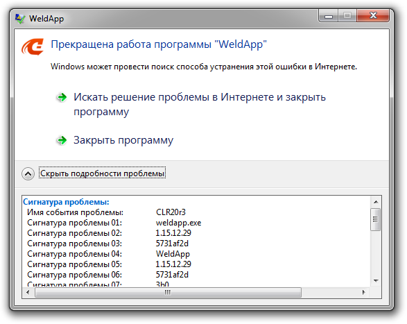 Сигнатура проблемы 01: WeldApp.exe