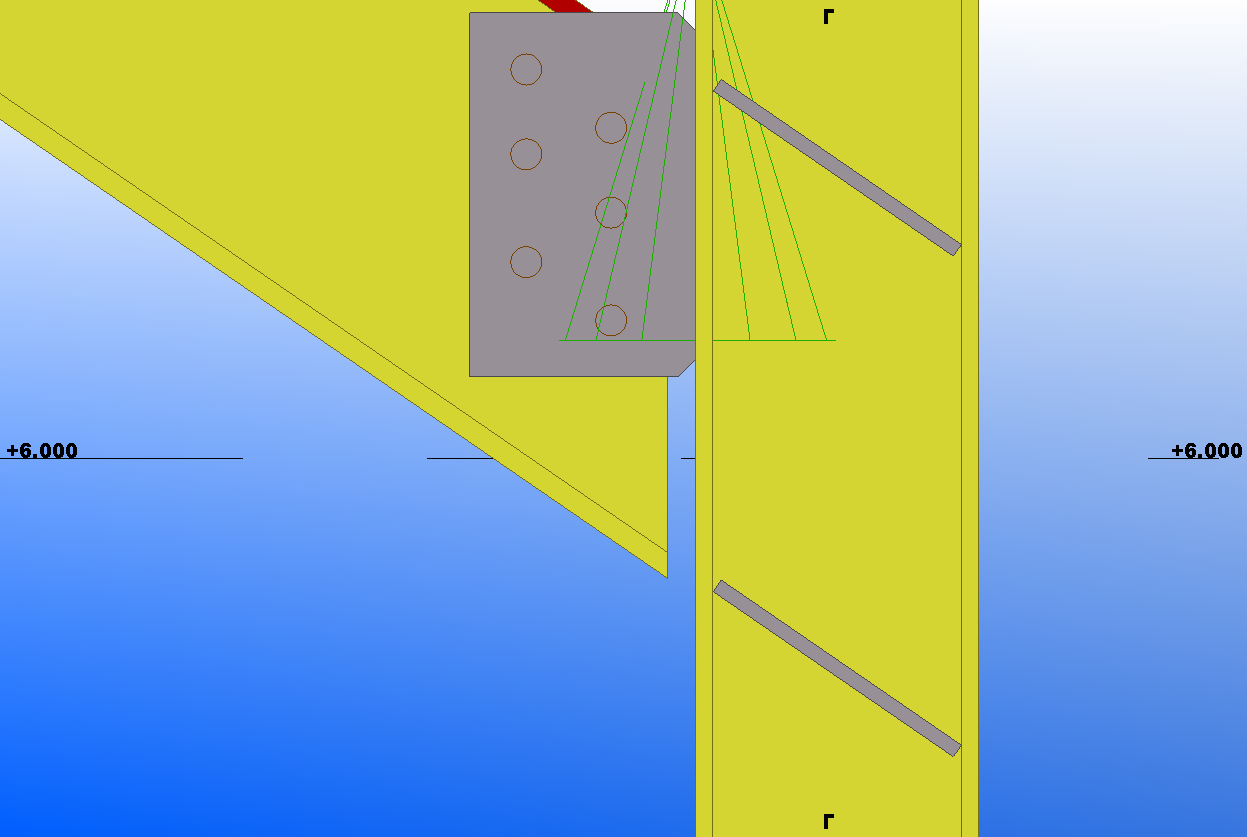 привет. подскажите мне пожалуйста оп компонентам. создаю рамный узел на накладках. При горизонтальном расположении ригеля все работает нормательно, но когда изменяю угол наклона ригеля относительно колонны возникает вот такая вещь: верхняя накладка зарезается колонной, не пойму как сделать что бы накладка "отодвигалась" от колонны на нужное расстояние, та же проблема с ответными ребрами. в стандарьном компоненте это как то реализовано, т. е. ребра как то привязаны, что при изменении угла наклона они не зарезаются колонной.