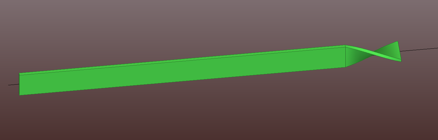Как средствами tekla получить правильные чертежи заготовки такой детали? Деталь из пластины, ЦЕЛЬНАЯ. только кончик длиной 100мм должен быть закручен на 90 градусов.