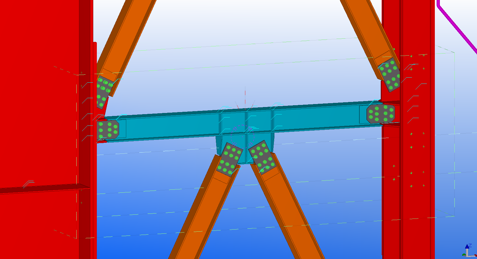 в идеале хочу, чтобы при снятие отчёта с балки показывались примыкающие к ней накладки и все болты относящиеся к накладкам. Но я не представляю как это сделать. Пока что мысль только отдельно снимать отчёт с балки и отдельно с накладки, и потом в екселе связывать, но должна быть какая то иерархия конструкций. Пример (см.рис) болты соединяющие колонну и балку должны относится к балке, а болты соединяющие балку и связи должны относиться к связи. А если все болты будут привязаны к накладкам, то как разделять какая из накладок относится к связи, а какая к балке?