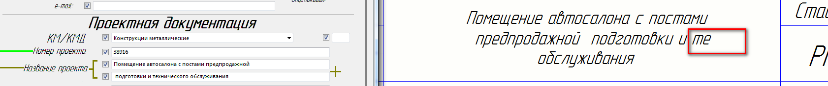 Играться с количеством пробелов.alstey писал(а):Не удается заполнить штамп как нужно. Часть текста пропадает.