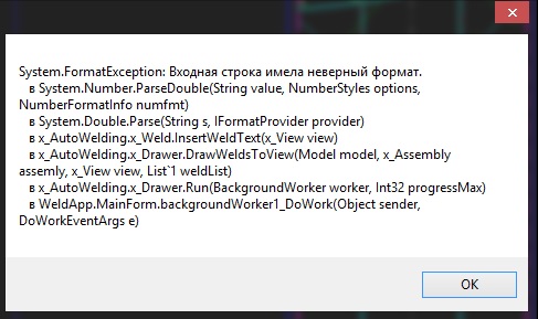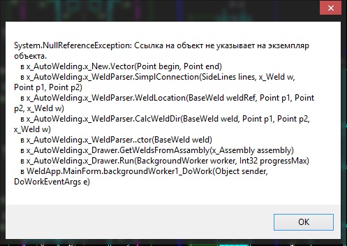 да, как в первом постуObelus писал(а):Точно такую же ошибку?troy-47 писал(а):Присоединяюсь к вопросу, выдает ошибку, и не рисует сварку в чертеже