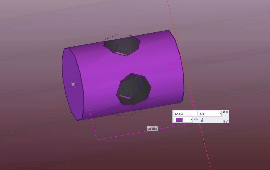 Никак не могу сделать бобышку с двумя взаимно перпендикуярными вырезами. Бобышка диаметром 36, в ней два отверстия диаметром по 18. Получается отверстия выполнить только диаметрами 18 и 17 , 20 и 19 и т.д. А одинаковым диаметром-вырождение. Есть, вообще, возможность решать такие задачи?