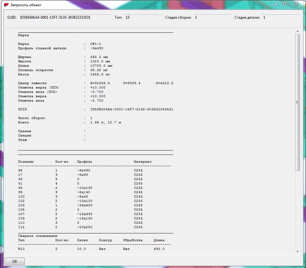 Спецификация отправочных марок. Не отображает профиль Tekla Structures.