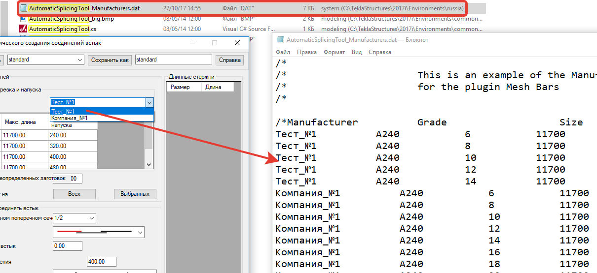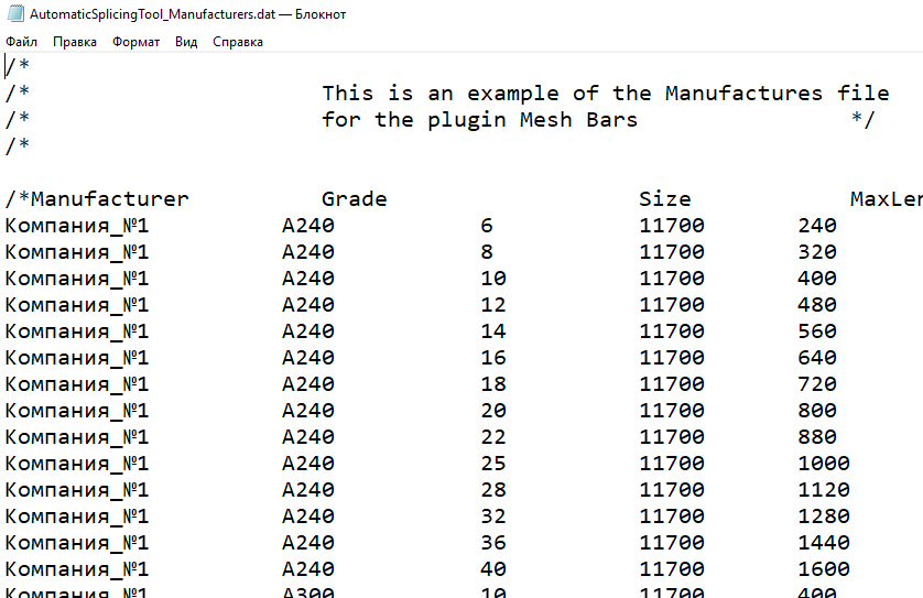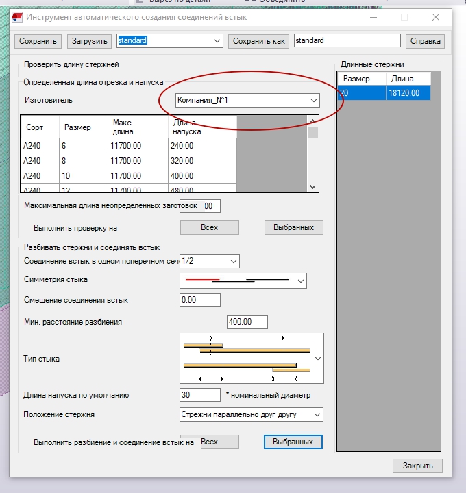 Как задать свои длины арматурных стержней в приложении "Инструмент автоматического создания соединений встык" ? Или как добавить/изменить "Изготовилеля" ?
