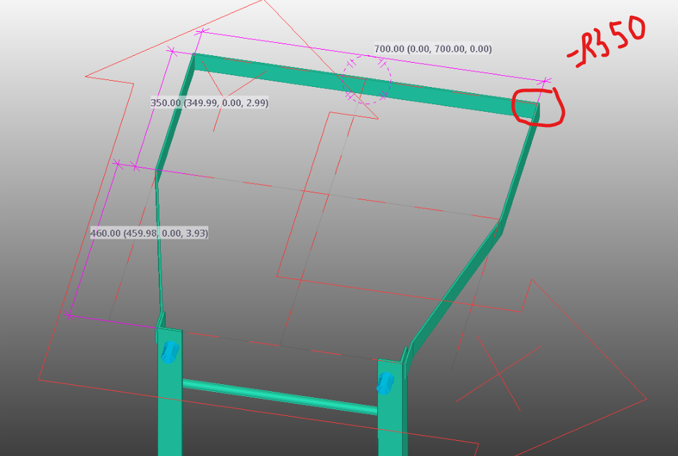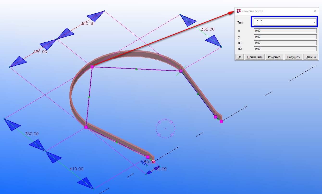 "изогнутой балкой" задаем необходимый контур и задаем радиус скругления