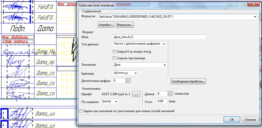 Подскажите где заполнить атрибут даты для "Гл.конструктор". В пользовательских атрибутах чертежа-технологический процесс не нашёл (за исключением строки "утвердил").