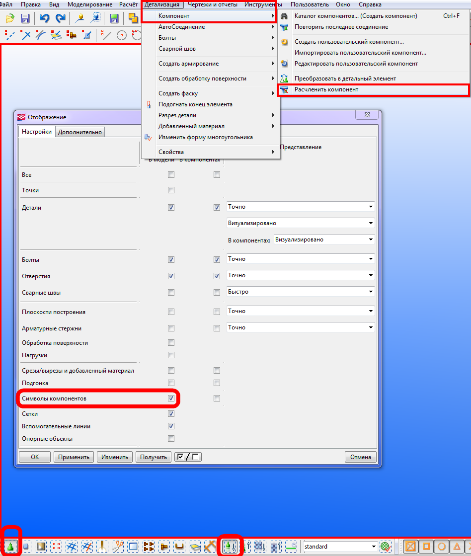 Век живи, век учись) Меня смутило, что если выбрать один пользовательский и второй стандартный, то по правому клику уже нет команды расчленить компонент. А из менюшки все работает, супер. Причем даже тип деталь расчленяет.