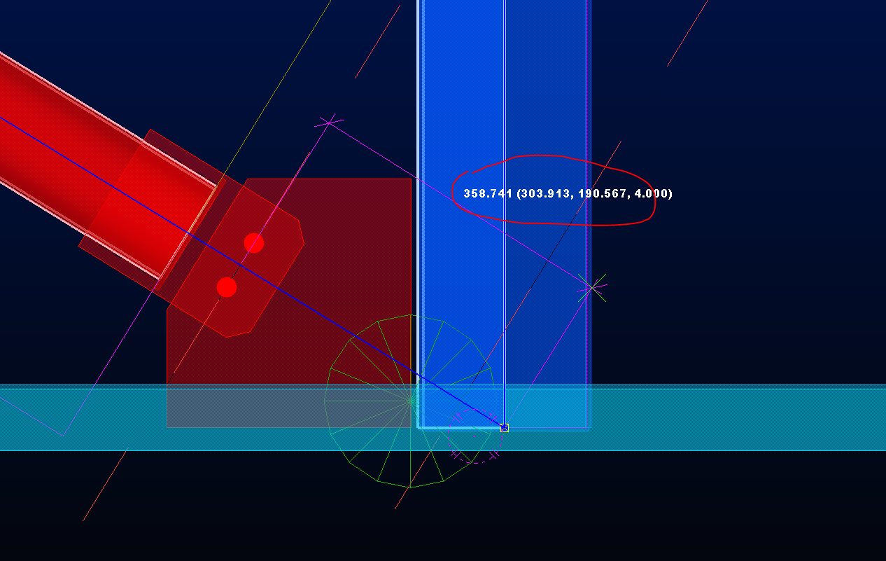 - вот пример , связь подходит к коробки из швеллера ось коробки завязана с осью связи , размер 300 по узлу, а по факту 358