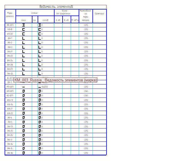В КМ элементы не спроста имеют один префикс и один профиль. Так эта группа элементов переходит из расчетной программы