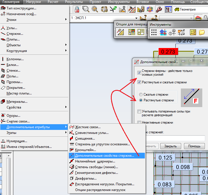 Как назначить тип стержня "ферменный стержень?"