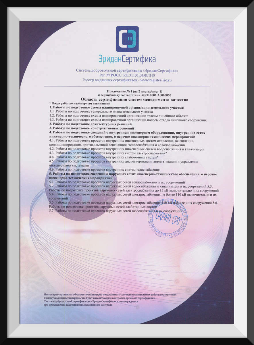 Большой штат сотрудников нашей компании позволяет предлагать минимальные сроки проектирования каждого из разделов, а также гарантировать высокое качество выдаваемой документации.