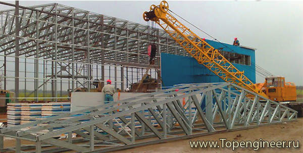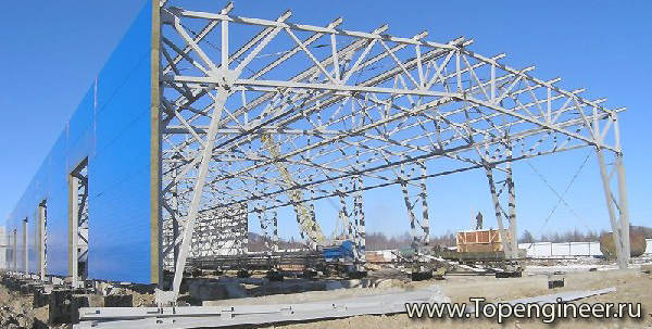 Монтаж конструкций склада.