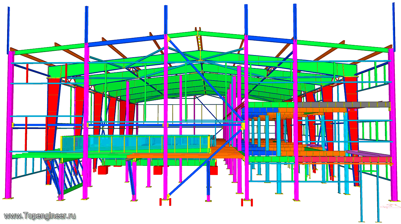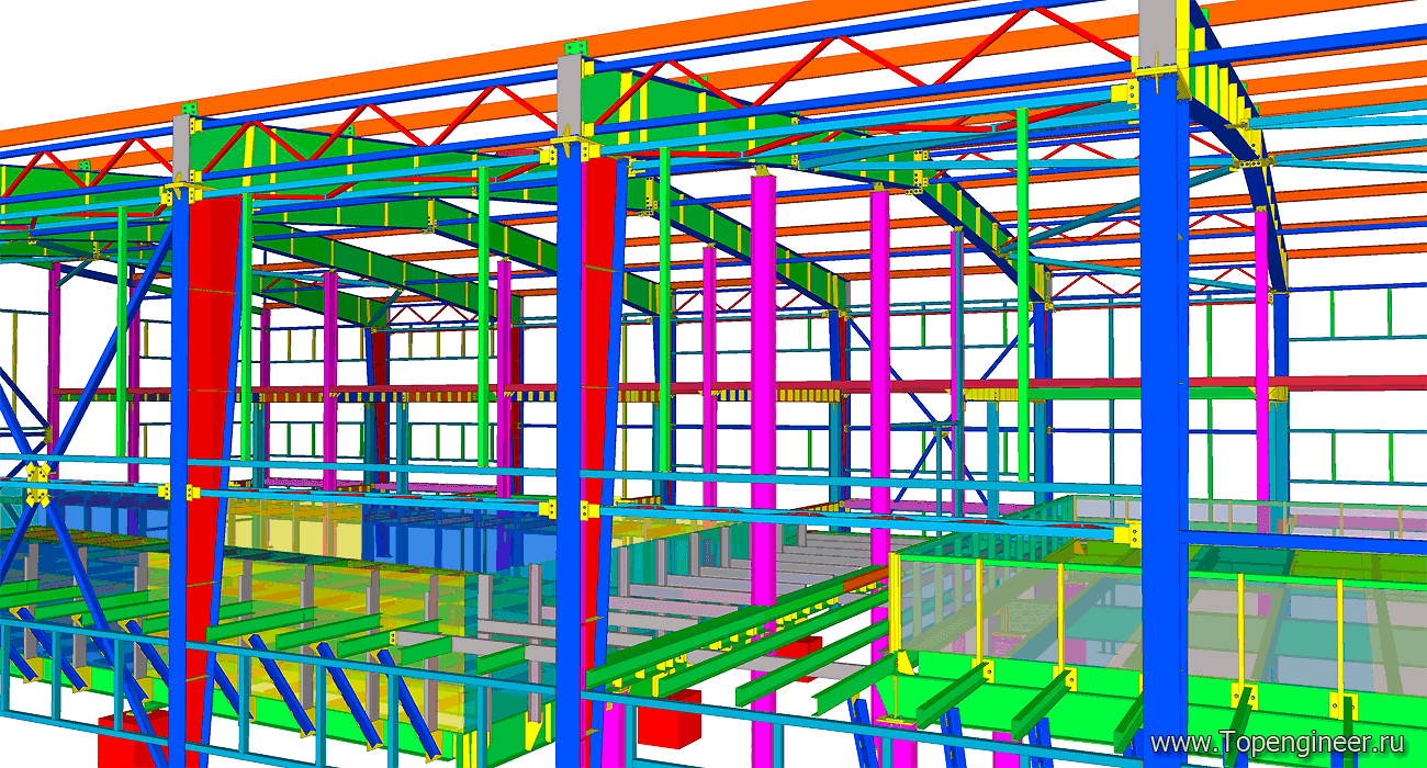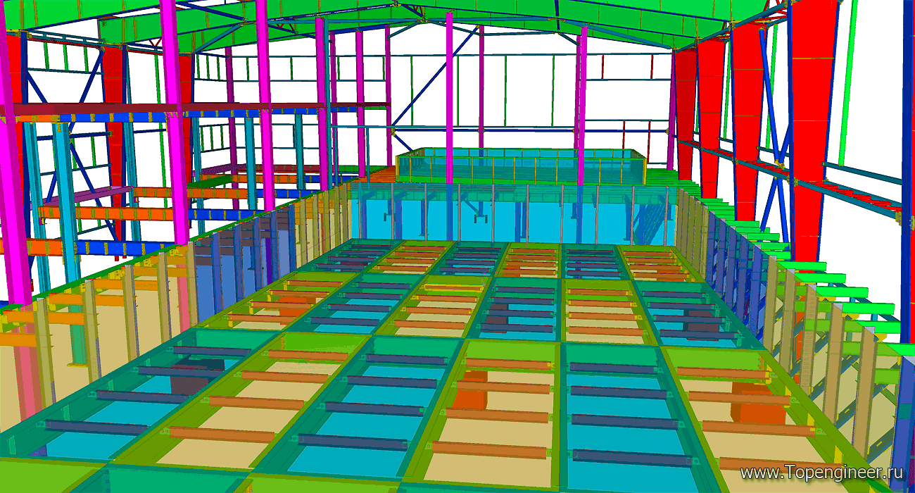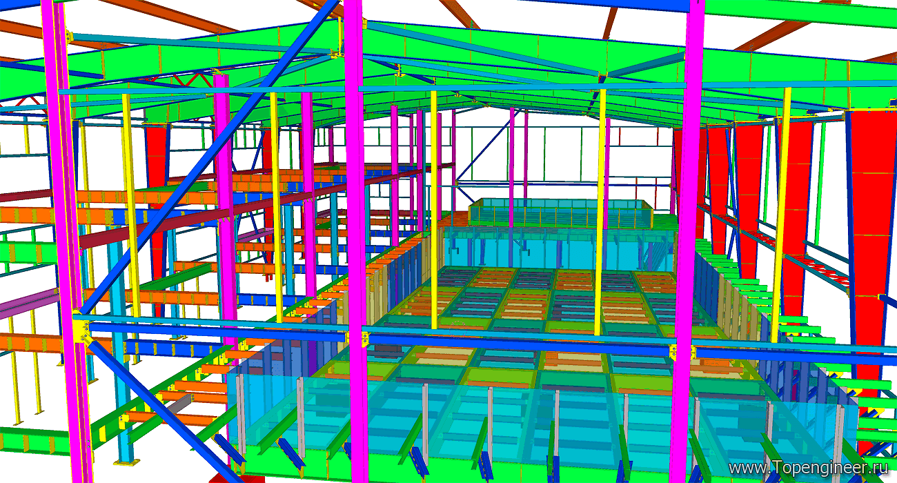 Примеры моделей разработанных нами бассейнов Приводим примеры модели стандартного 25 метрового бассейна. Основные несущие конструкции кровли выполнены из сварных балок переменного сечения. Сварная балка переменного сечения позволяет существенно упростить конструкция кровли а значит и снизить затрата на производстве перевозке конструкция на место монтажа.
