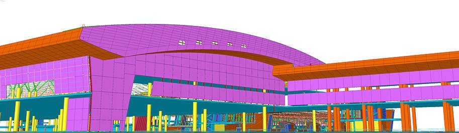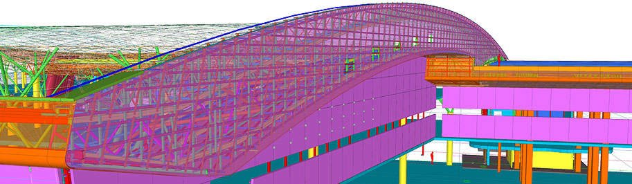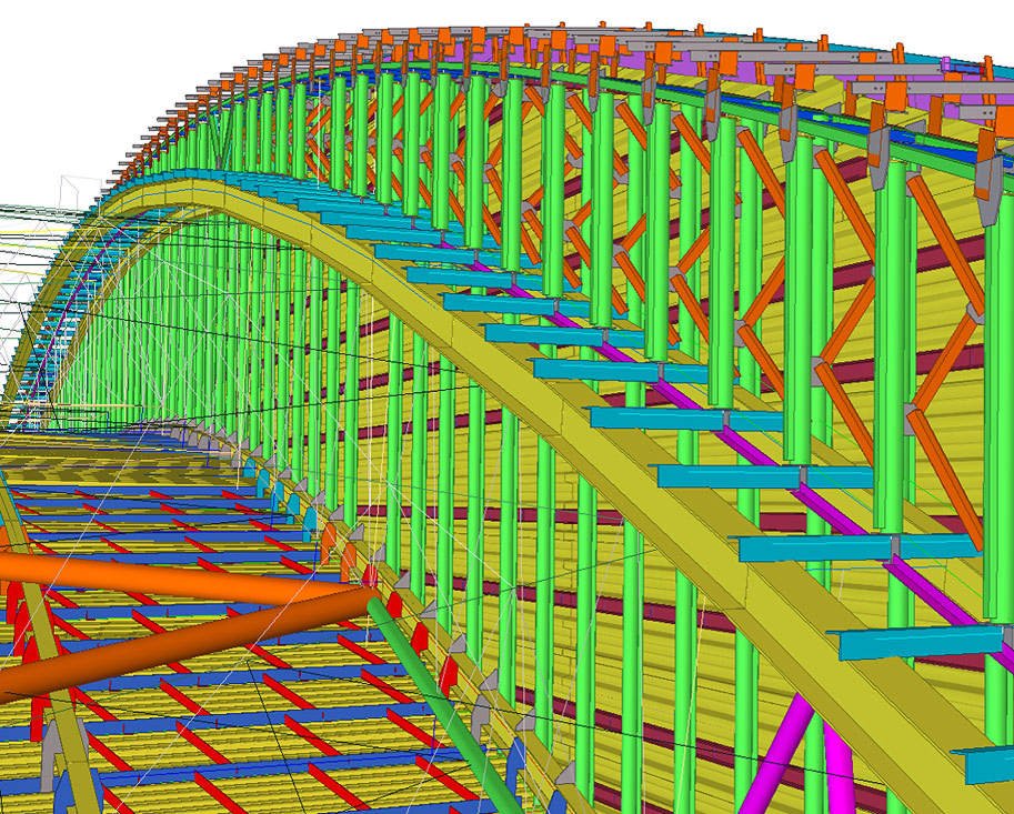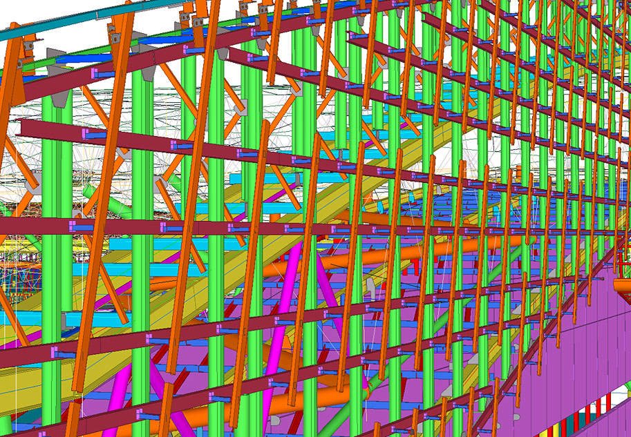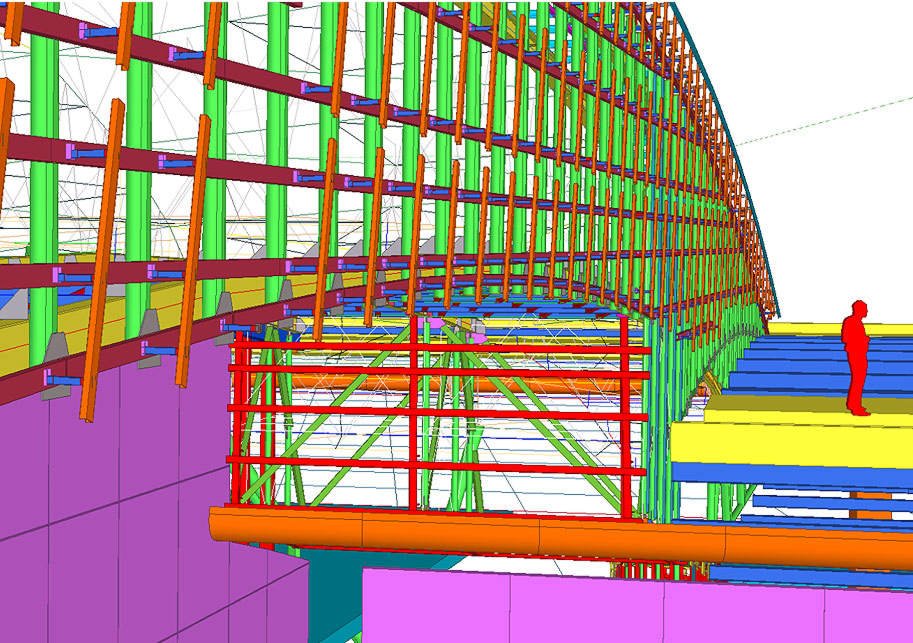 Трехмерная модель проекта упростила не только проектирование, но и монтаж конструкции, так как на геодезию объекта можно накладывать твердотельную модель проекта.