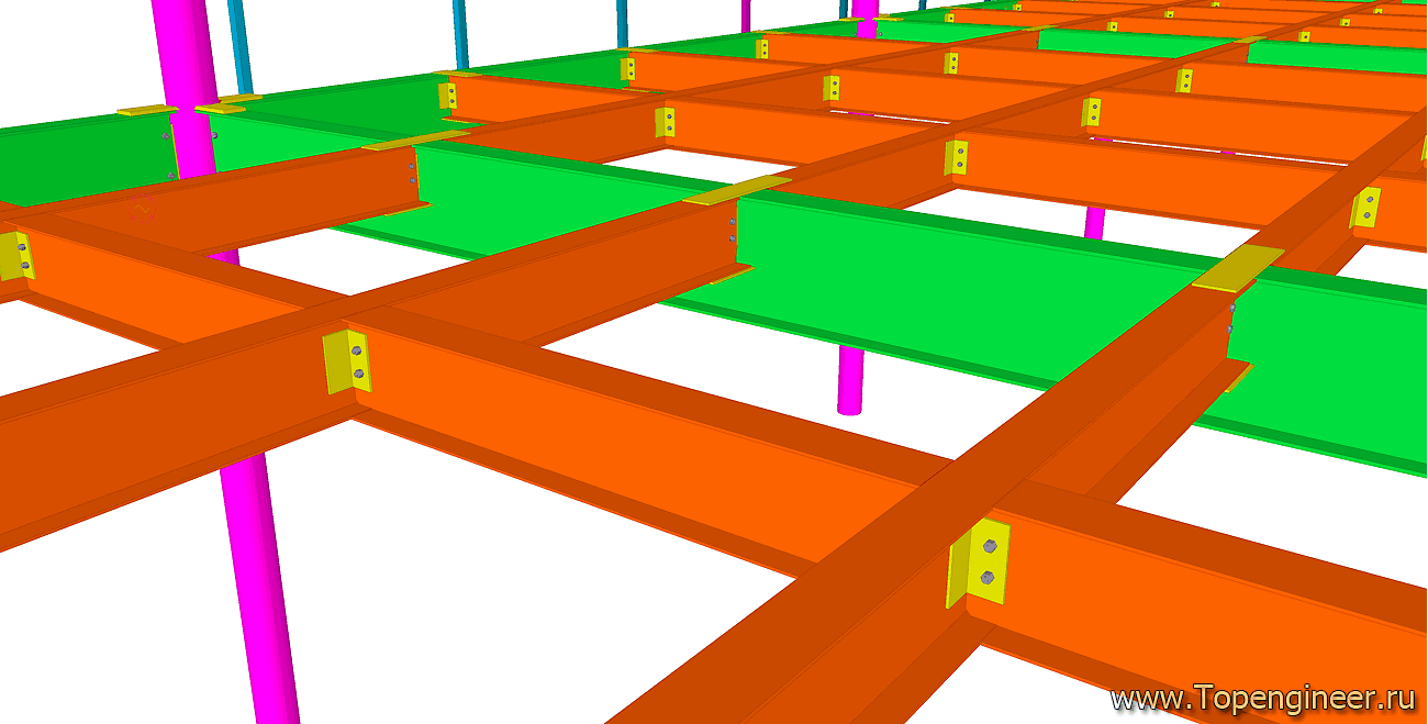 Меж этажные перекрытия выполняются из прокатных балок, реже из сварных балок. Конструкция колонн может быть разнообразной.