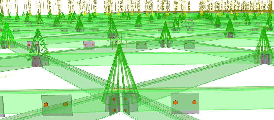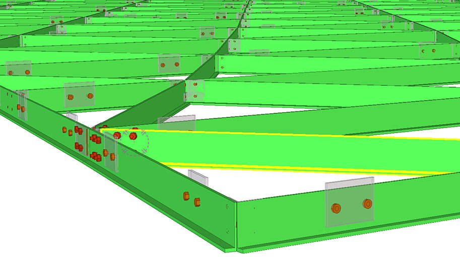Большое количество болтовых отверстий усложняет деталировочные чертежи. Так, на чертеже одной балки может находиться до 46 взаимосвязанных отверстий.
