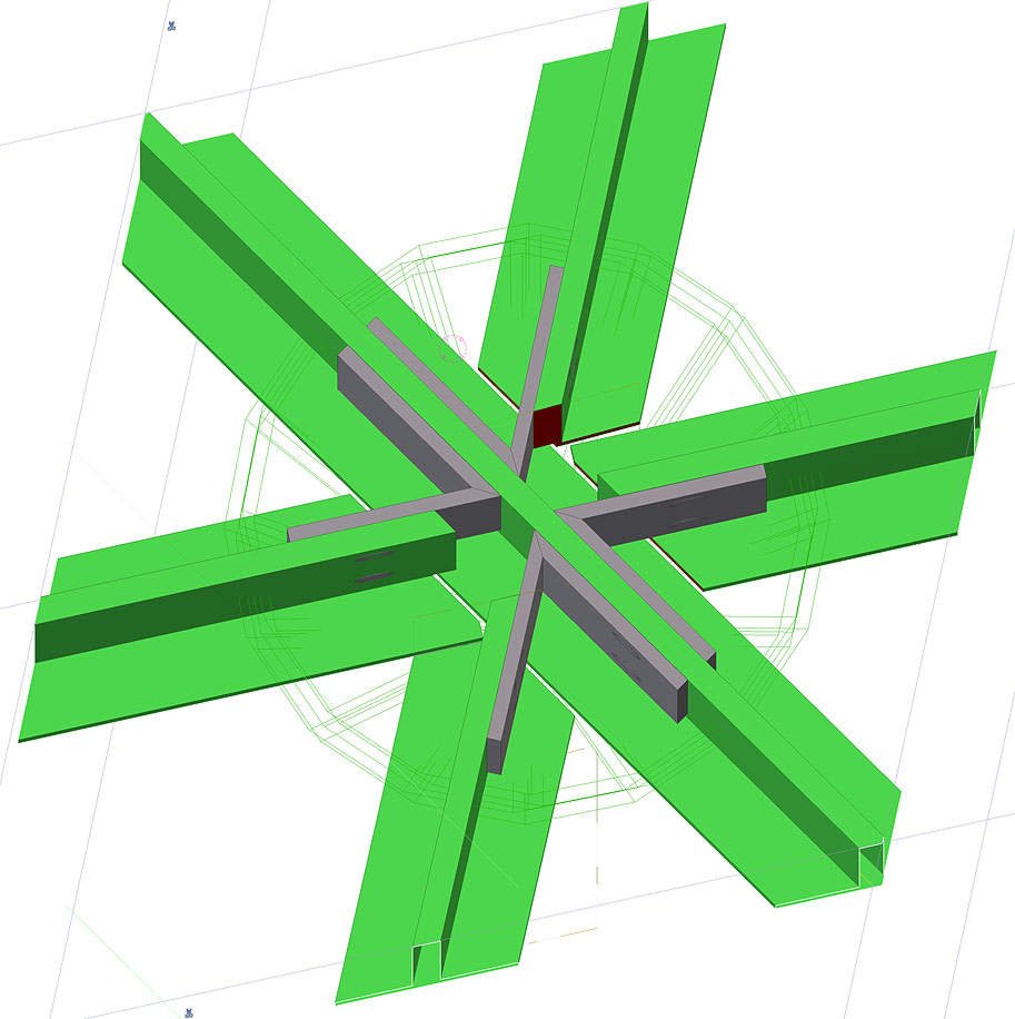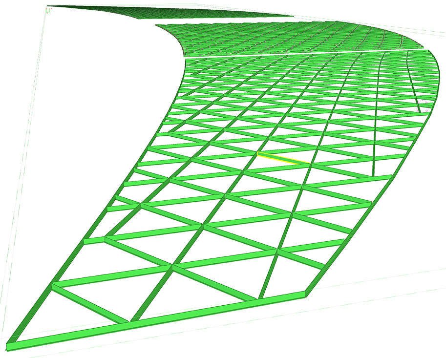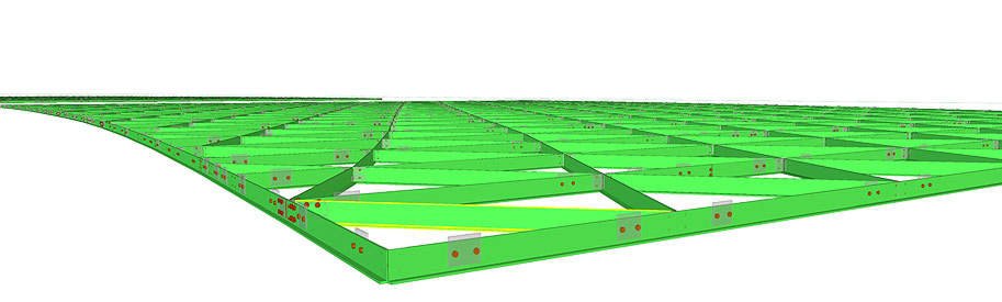 Каждая балка такой конструкции не только не параллельна друг другу, но и лежит в своей уникальной плоскости.